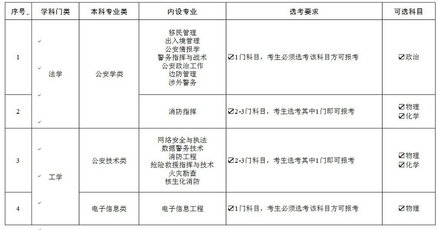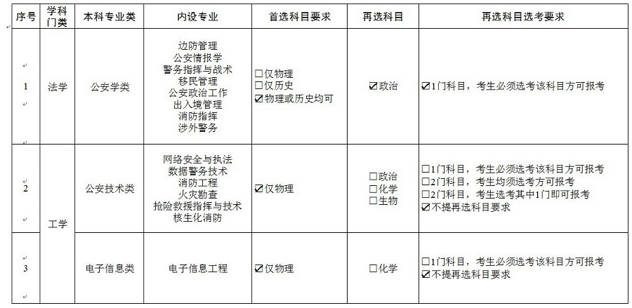 Q.我是高考改革省份考生,請(qǐng)問(wèn)警察大學(xué)各專業(yè)對(duì)于選考科目有什么要求?