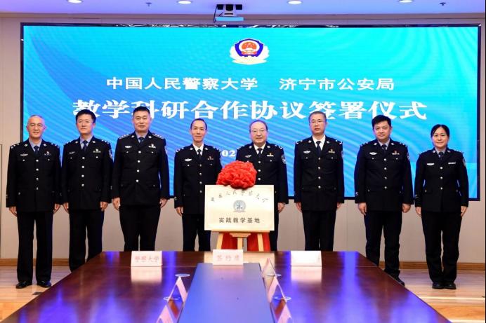 為貫徹落實全國公安工作會議精神,深化創新公安院校人才培養模式,11月6日,中國人民警察大學與濟寧市公安局教學科研合作協議簽約儀式在濟寧市公安局舉行。濟寧市副市長、公安局局長張大勇出席簽約儀式,警察大學副校長潘清義與濟寧市副市長、公安局局長張大勇分別代表雙方致辭、簽署合作協議并為“中國人民警察大學實踐教學基地”揭牌。簽約儀式由濟寧市公安局政委鄭杰主持。