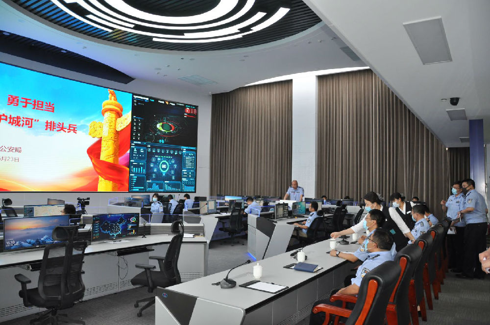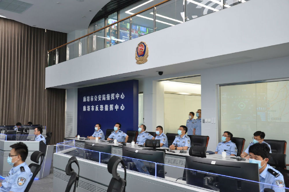 座談會上,廊坊市公安局警保處趙征處長首先從全市裝備配備、應急庫建設、警用無人機使用、情指中心建設等四個方面詳細介紹了警務保障處目前的基本情況。朱紅偉代表警務裝備技術學院介紹了學院的現狀和此次調研的目的。與會人員從無人機裝備和使用情況,警用無人機人才需求、裝備管理和保障、警務應急通信、安檢查緝等方面進行了深入交流,并對文安縣警用無人機排污執法案例進行了熱烈的討論。隨后,調研人員參觀了情報指揮中心,展示了廊坊市公安局警務工作信息化、智能化的新成績。