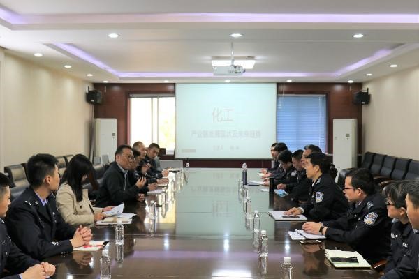 講座中,楊林院長主要對化工產業鏈發展現狀及未來趨勢進行了詳細介紹,重點講解了化工產業鏈與農業、醫藥、能源、國防等方面的聯系,并對化工產業鏈在警用裝備、消防材料等方面的研發合作進行了講解。會后楊林院長與劉立文書記、胡定煜副院長對中國化工集團中化科技總院與中國人民警察大學救援指揮學院、偵查學院未來的一些合作領域進行了探討。