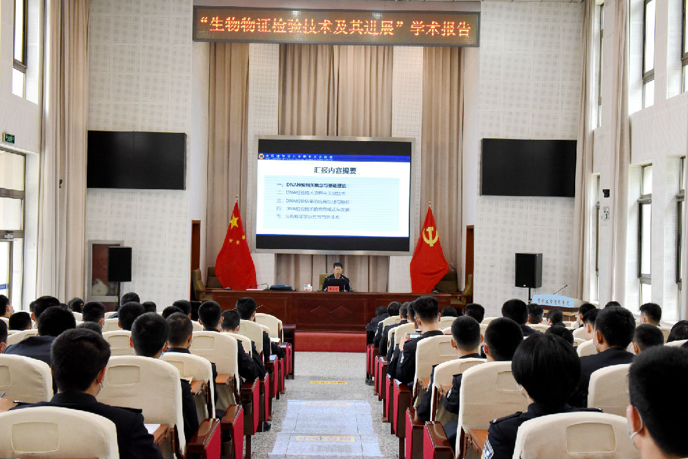 4月21日下午,學校邀請公安部物證鑒定中心、法醫遺傳部重點實驗室主任法醫師季安全,為我校師生作了題為“生物物證檢驗技術及其進展”的學術報告。科研處處長盧林剛主持會議,偵查學院、智慧警務學院、公安政治學院等單位和學校科創社共130余名師生聆聽了講座。