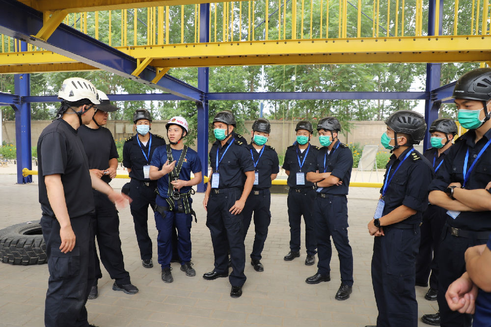 6月2日,高空救援、山岳救援演練組在繩索救援訓練設施場地與澳門消防研修班學員進行了技術交流,交流活動由救援指揮學院黨委書記劉立文同志主持。