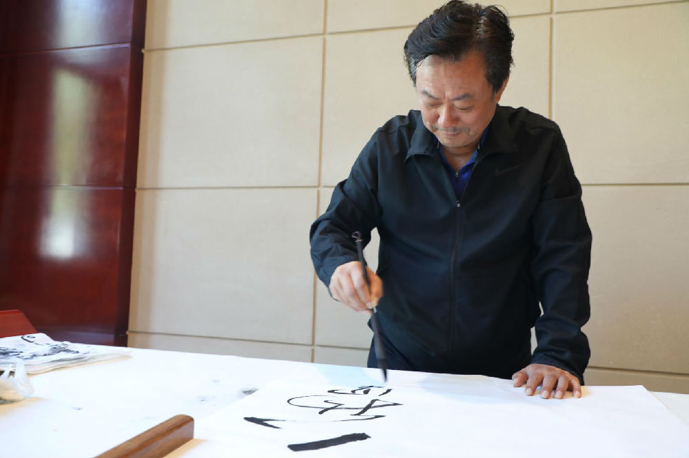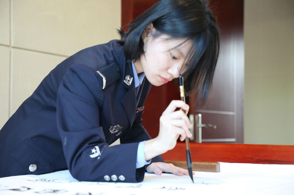 交流結束后,曲教授決定在現場進行創作,在觀摩了書法大家現場的創作后,我們的學生們更是深刻的體會到了書法這一古典的藝術所帶來的美感。曲教授更是為書畫代表以及中國人民警察大學題字,并合影留念,通過此次活動的順利開展,為下一步社團活動打下了良好的基礎。