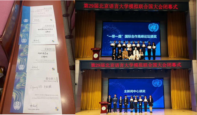 4月7日至4月9日,第29屆北京語言大學模擬聯合國大會在京舉行。維和中心王櫻惠帶領6名學生受邀參加比賽,并獲得優異成績。其中,智慧警務七隊王海松、智慧警務九隊王嘉樹獲得“‘一帶一路’國際合作高峰論壇委員會榮譽提名”、防火工程三隊車裕璐獲得“新聞中心委員會最佳新人”,代表團成績在大會中位列除東道主學校外第一名。