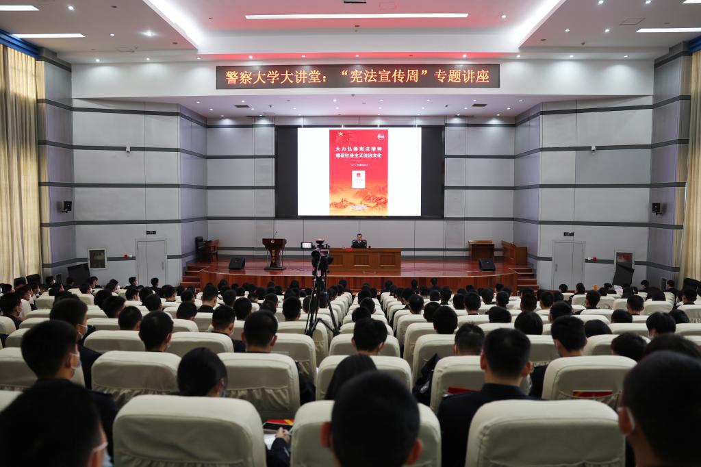為大力弘揚憲法精神,建設社會主義法治文化,在國家憲法日和學校開展“憲法宣傳周”活動之際,12月8日,學校在綜合教學樓報告廳D406舉辦“警察大學大講堂”活動,公安法學院副院長馮江峰以“加強憲法實施維護憲法權威”為題作專題輔導。學校師生代表300余人參加講座。
