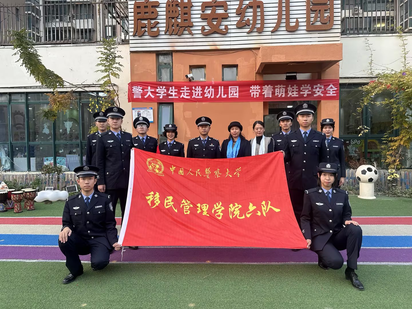 宣傳結束后,移民管理學院六隊與鹿麒安幼兒園開展聯誼活動。同學們為小朋友們表演了《外婆的澎湖灣》長笛演奏,健美操表演以及4名藏族同學精心準備的藏族民謠與舞蹈《鍋莊舞》等精彩演出。通過寓教于樂的方式進一步宣傳消防安全知識,贏得了小朋友們的陣陣掌聲。