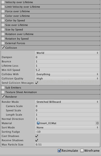 第五項(xiàng)(Collides With):可碰撞范圍,設(shè)置可以與該粒子系統(tǒng)碰撞的層