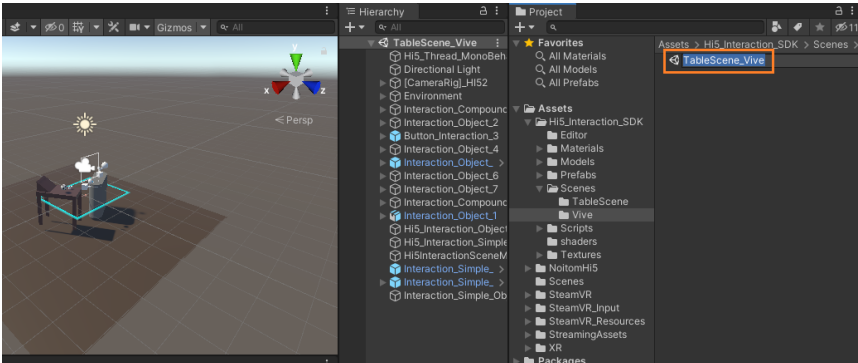 打開示例場景 TableScene_Vive,參考其設置,如圖所示: