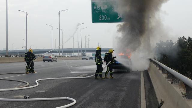 2021年11月3日早上8時16分,南昌市青云譜區昌南大道互通立交橋上一輛黑色小轎車突然起火,火勢較大。所幸事發時駕駛員及時撤離,未造成人員傷亡。