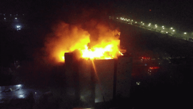 新元大道特勤消防救援站3車(chē)21人作為首批救援力量趕到現(xiàn)場(chǎng),此時(shí)火勢(shì)已經(jīng)蔓延至頂樓,加之燃燒物質(zhì)多為PVC材料,導(dǎo)致火勢(shì)異常猛烈。更令人擔(dān)憂的是,廠房一樓儲(chǔ)存了30余噸氫氟酸及10余噸硫酸,二樓儲(chǔ)存了250升氟化氫銨蝕刻液等易燃易爆危險(xiǎn)化學(xué)品。