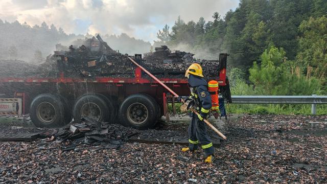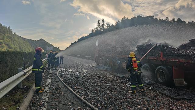 8月25日凌晨4時,贛州市大廣高速定南段定南往南昌方向一輛裝載著電池的貨車起火,無人員被困,當地消防部門接到報警后立即前往現場處置。