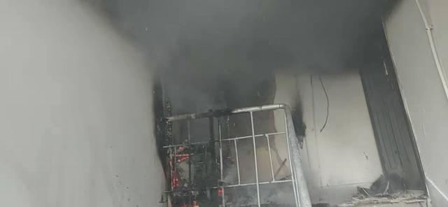 14時27分,消防救援人員趕到現場看到,樓道上大火正在猛烈燃燒,并危及旁邊一家住戶,一位老人被困房中。消防救援人員關閉電閘閥門,然后出一支水槍進行滅火降溫,壓制火勢向居民家中蔓延;同時組織救援人員沖進居民家中,將被困老人救出,安全轉移至樓下。5分鐘后,火勢被徹底撲滅。