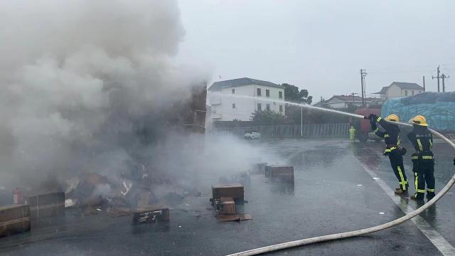 6月8日10時,鷹潭市余江區中童鎮龍虎山服務區往南昌方向有一輛貨車著火,無人員被困。市消防救援支隊接到知情人報警后,立即調派6輛消防車、35名消防救援人員趕赴現場處置。
