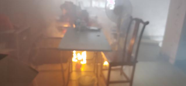 10時(shí)33分,現(xiàn)場(chǎng)火勢(shì)已被完全撲滅,著火位置位于辦公區(qū)域電腦桌旁。經(jīng)初步調(diào)查,起火原因疑似是排插老化短路所致。