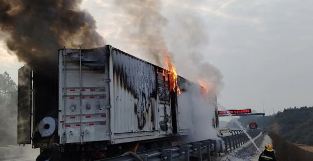 1月08日6時,吉安市萬安縣五豐鎮(zhèn)大廣高速南下方向2953公樁處一輛貨車起火。接警后,消防救援人員立即趕赴現(xiàn)場。