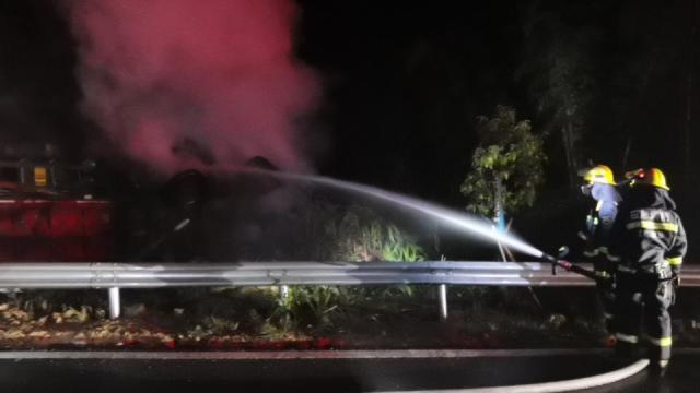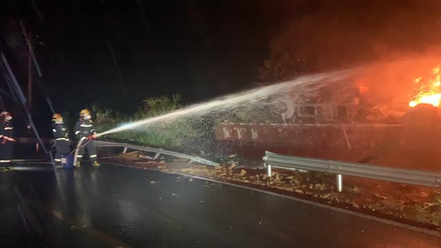 轉載自鷹潭:貨車爆胎沖出防護欄引起火災 消防緊急救援-江西省消防救援總隊