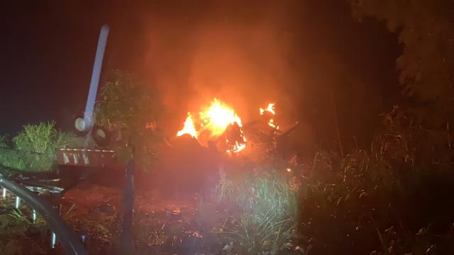 據事故司機稱,該貨車在公路上平穩行駛至事發路段時右邊前輪胎爆胎,控制不住方向盤導致貨車失去控制,仰翻至公路護欄外。事故發生后,司機立馬從駕駛室內自行逃出。車輛隨后發生自燃,并迅速蔓延。目前,事故原因在進一步調查中。