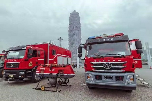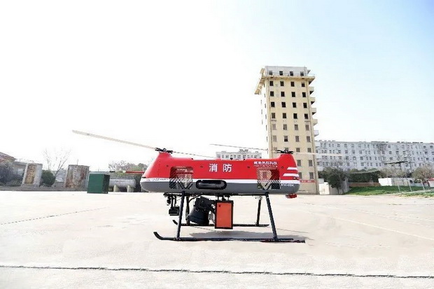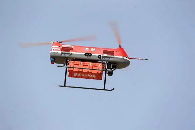 據了解,該項目研發的消防無人機滅火救援綜合裝備集成了電動偵查無人機、大載重無人直升機、承載運輸車輛、滅火救援模塊,具備高空滅火、火場偵察和救援等功能。借助縱列式雙旋翼燃油動力無人機載重量大、航時長、抗后座力能力強等特點,搭載專用滅火裝置和高效滅火藥劑,可實施對高層建筑有窗房間火勢的精準撲滅或快速壓制。其彌補了舉高消防車作業展開時間長、登高作業場地固定、靈活機動性差等不足,與內攻消防救援人員和建筑室內消防設施緊密配合,將大大提升滅火救援作戰效率。