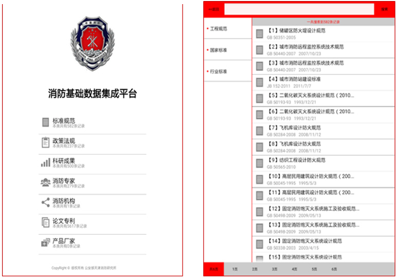 該成果收集了大量消防領(lǐng)域文件,系統(tǒng)基于PC、手機等多終端開發(fā),便于消防從業(yè)人員查詢消防信息,為消防知識普及、消防管理、科學研究、系統(tǒng)設(shè)計、標準制修訂以及產(chǎn)品生產(chǎn)等方面提供數(shù)據(jù)支撐。