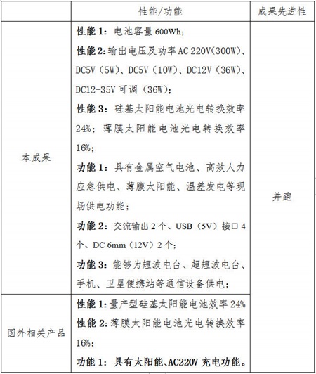 該成果依托公安部應用創新計劃項目《消防通信裝備現場應急供電裝置研制》(項目編號:2014YYCXSYXF066),研究適合重特大災害事故現場應用的無燃料、自主供電技術,研發金屬空氣電池、高效人力應急供電、薄膜太陽能、溫差發電等應急供電裝置,解決救援現場應急通信裝置現場供電難題。