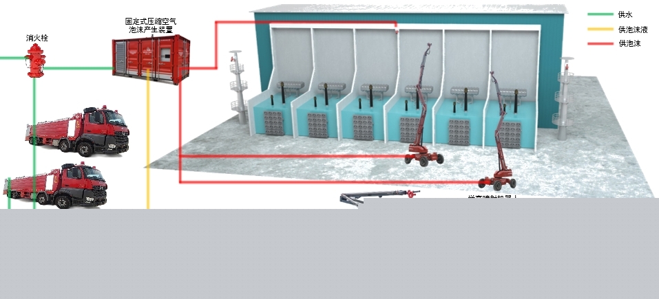 適用于220kV油浸變壓器、500kV油浸變壓器、±800kV特高壓換流變壓器、±1100kV特高壓換流變壓器等各種規格的大型油浸變壓器及充油設施火災撲救處置,也可在石化、高大空間廠房推廣應用。