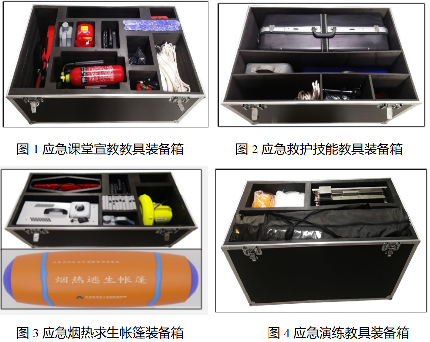(三)應(yīng)急課堂宣教教具裝備箱主要應(yīng)用于消防應(yīng)急課堂培訓(xùn)輔助教學(xué)使用,配置覆蓋滅火器材使用、個人防護器材使用、消防應(yīng)急處理、常見隱患演示等知識點,滿足課堂教學(xué)需求。