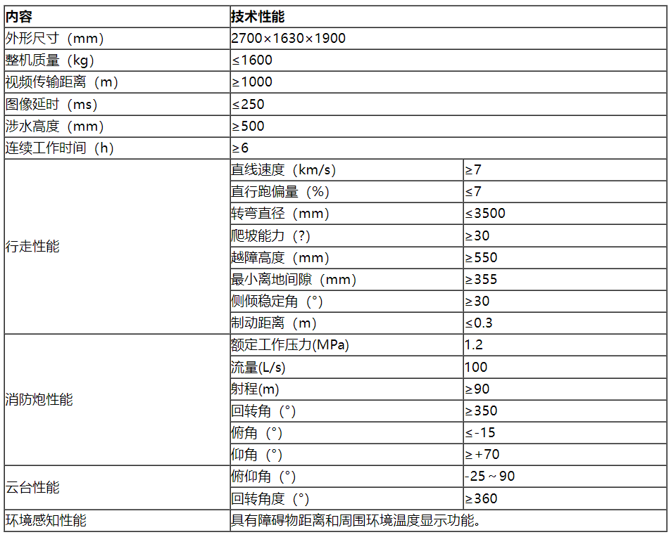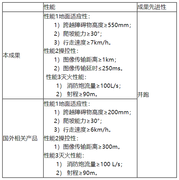 具有非視距遙操作功能的全地形消防機器人是國家重點研發計劃課題《系列特種滅火偵察消防機器人研制與應用技術》(編號:2016YFC0800607)的研究成果之一。該成果由應急管理部上海消防研究所牽頭研制,適用于石油化工、油罐區、大型倉庫、建筑物等高溫、強熱輻射、易坍塌等危險場所(消防車輛及人員無法靠近),替代消防員進行滅火、冷卻、排煙、偵察、冷卻等消防作業,可以避免消防人員傷亡等現象發生。該機器人具有地面適應性強、負載能力高、操作性能好的特點。成果的各項技術性能指標通過了國家消防裝備質量監督檢驗中心的第三方委托檢驗;經上海科學技術情報研究所檢索,成果達到國際先進水平。