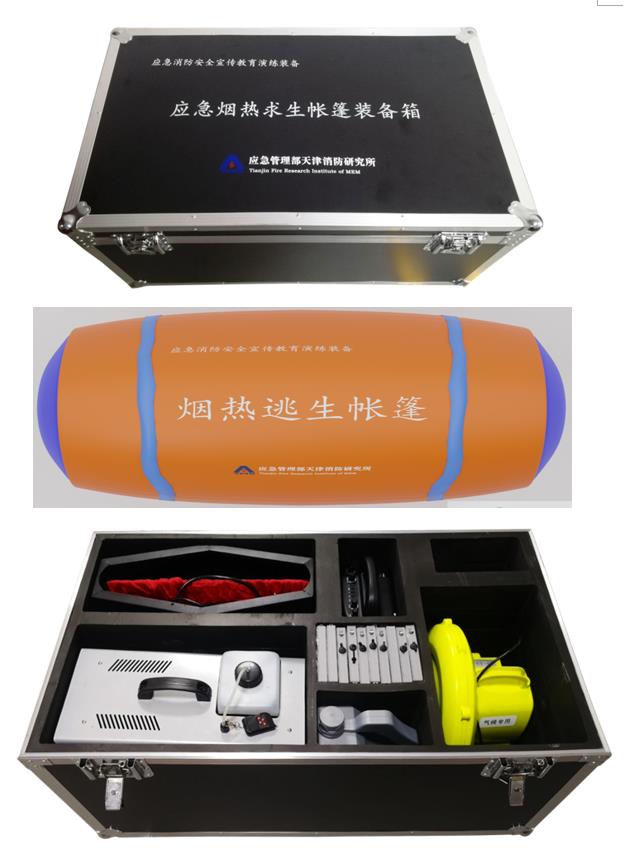 2.功能要求:煙熱逃生帳篷、疏散標識、風機、發煙裝置、模擬火源裝置等教具。