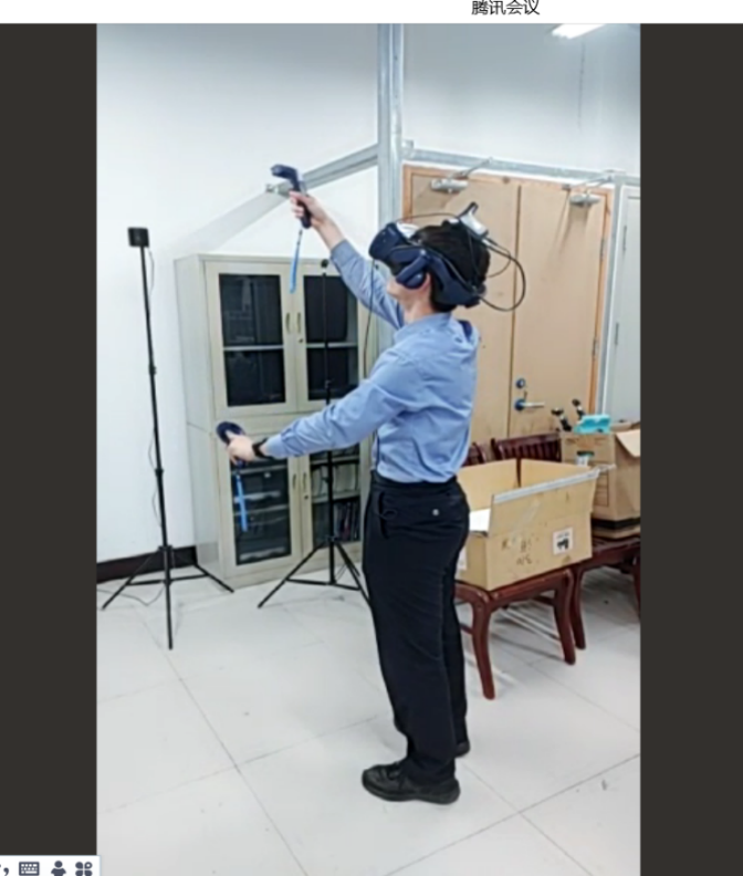 會上,首先由杜代勇同學利用VR設備展示“空中漫步,絕經逃生,高空攀登”等參賽科目的展示。在展示的同時,湯華清老師對每個場景的進行點評,指出在高空漫步的高度感和晃動感不夠,絕境逃生的真實感欠缺等。與此同時,針對這些突出問題,全組展開激烈的討論交流,辛勃呈、趙金道、蘭潔等同學均深入發表了自己的見解。最后,與會人員就比賽科目的下一步方案進行了規劃與設計,進一步地明確了下一步的工作方向。