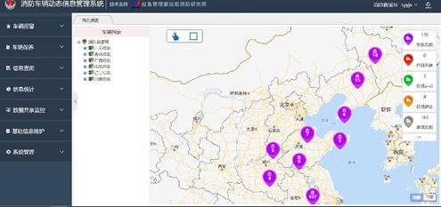 該成果2018年在遼寧、山東、河南等總隊深入推廣應(yīng)用,根據(jù)實際應(yīng)用中發(fā)現(xiàn)的問題,消防車輛動態(tài)信息采集裝置及相關(guān)配套設(shè)備在安全防護等級、電磁兼容方面不斷優(yōu)化和改進,更加適應(yīng)在消防車輛嚴(yán)苛的環(huán)境下應(yīng)用。同時,消防車輛動態(tài)信息管理系統(tǒng)軟件,根據(jù)各地的不同應(yīng)用需求,增加完善了數(shù)據(jù)共享功能,將所采集的實時數(shù)據(jù)及不同專題的統(tǒng)計數(shù)據(jù)推送給其他業(yè)務(wù)系統(tǒng)。目前,在部局裝備處的指導(dǎo)下,系統(tǒng)正在與消防裝備管理系統(tǒng)進行數(shù)據(jù)對接,將所采集的數(shù)據(jù)推送給消防裝備管理系統(tǒng),有力推動本系統(tǒng)的深入應(yīng)用。