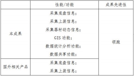 該成果與國內(nèi)外同類先進產(chǎn)品比較如下。