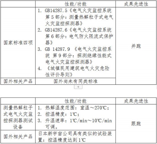 該成果取得實用新型專利1項,專利名稱為:一種測量熱解粒子式電氣火災監控探測器測試設備,取得軟件著作權1項,軟件名稱為:測量熱解粒子式電氣火災監控探測器試驗軟件V1.0。經專業機構檢索,成果達到了國內領先水平。