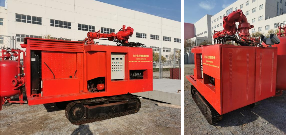 具備智能判定、流量控制、實時反饋調整的功能;流量可在50-200L/s調整,并能進行柱霧狀噴射切換,在200L/s流量下的射程超過130m,射高超過76m,射流集中性好;自動調整射流空間方向,在130m處射流落點誤差不大于2m;行進速度≥5km/h。