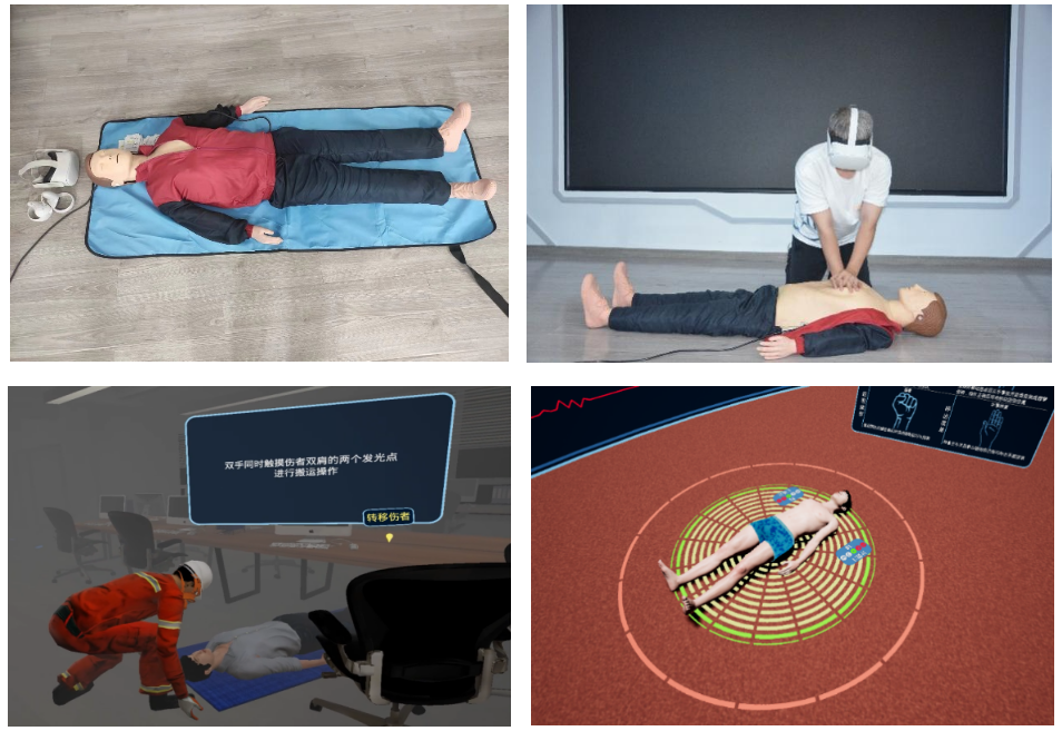 MR混合現(xiàn)實(shí)心肺復(fù)蘇技能實(shí)訓(xùn)系統(tǒng),主要由頭戴式混合現(xiàn)實(shí)設(shè)備和模擬實(shí)操仿真人組成,系統(tǒng)軟件整體設(shè)計(jì)采用模塊化關(guān)卡、情景化融入和組件復(fù)用的設(shè)計(jì)架構(gòu),內(nèi)含教、學(xué)、練、測、評(píng)五大培訓(xùn)版塊,開發(fā)設(shè)計(jì)有不同情景的仿真實(shí)訓(xùn)體驗(yàn)案例,包含觸電窒息、濃煙窒息、溺水窒息、交通事故等場景,體驗(yàn)者可以根據(jù)三維交互/語音提示等操作,身臨其境般學(xué)習(xí)心肺復(fù)蘇技能的整個(gè)救護(hù)處置流程,在虛擬場景中實(shí)現(xiàn)沉浸式模擬仿真訓(xùn)練,在立體可交互的指引和實(shí)時(shí)反饋下高效、準(zhǔn)確的掌握心肺復(fù)蘇技能操作及四大救護(hù)技術(shù)常用知識(shí)。
