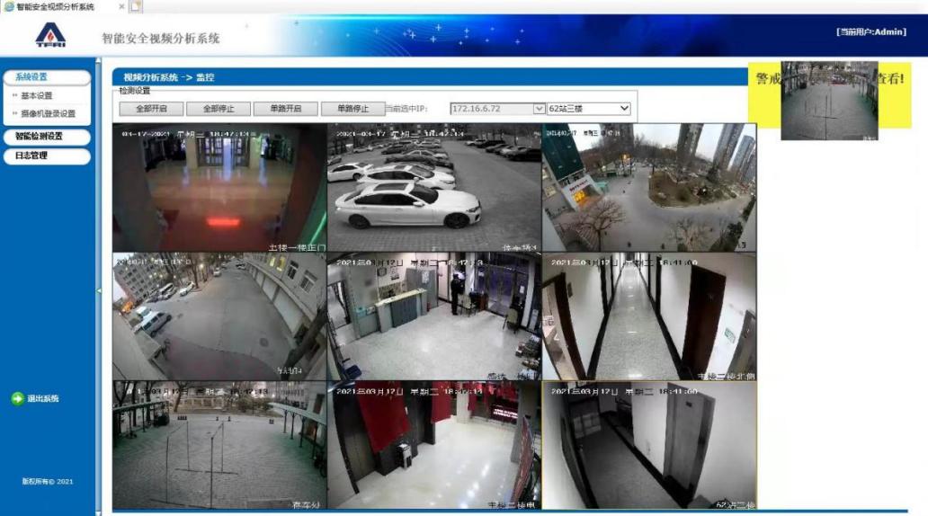 不改變已有的視頻監控網絡架構,通過外接計算設備使監控攝像頭具備智能性,克服了監控畫面光照變化強烈、物體遮擋情況較多、雨雪天氣影響等干擾問題,功能覆蓋消防通道占用檢測、消控室人員工作狀態檢測、重點人員身份識別、煙霧及火焰檢測、消防栓傾倒與流水檢測、行人異常行為檢測、電動自行車等受控物品檢測和受控區域人員進出檢測都進行了設計,基本覆蓋日常消防管理的各個方面,并且在測試中表現出報警準確且快速的特點,填補大部分市售智能分析系統的功能空白。適用于九小場所、社區以及部分文保單位。