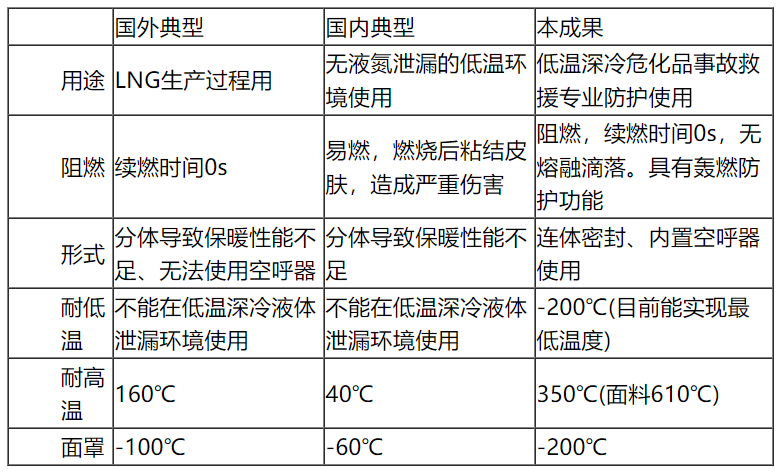 本成果填補了國內(nèi)外低溫深冷危化品應(yīng)急救援專業(yè)防護服裝的空白。低溫深冷防護性能、整體保溫性能、阻燃性能、轟燃防護性能、重量等性能指標(biāo)均處于國際先進水平。